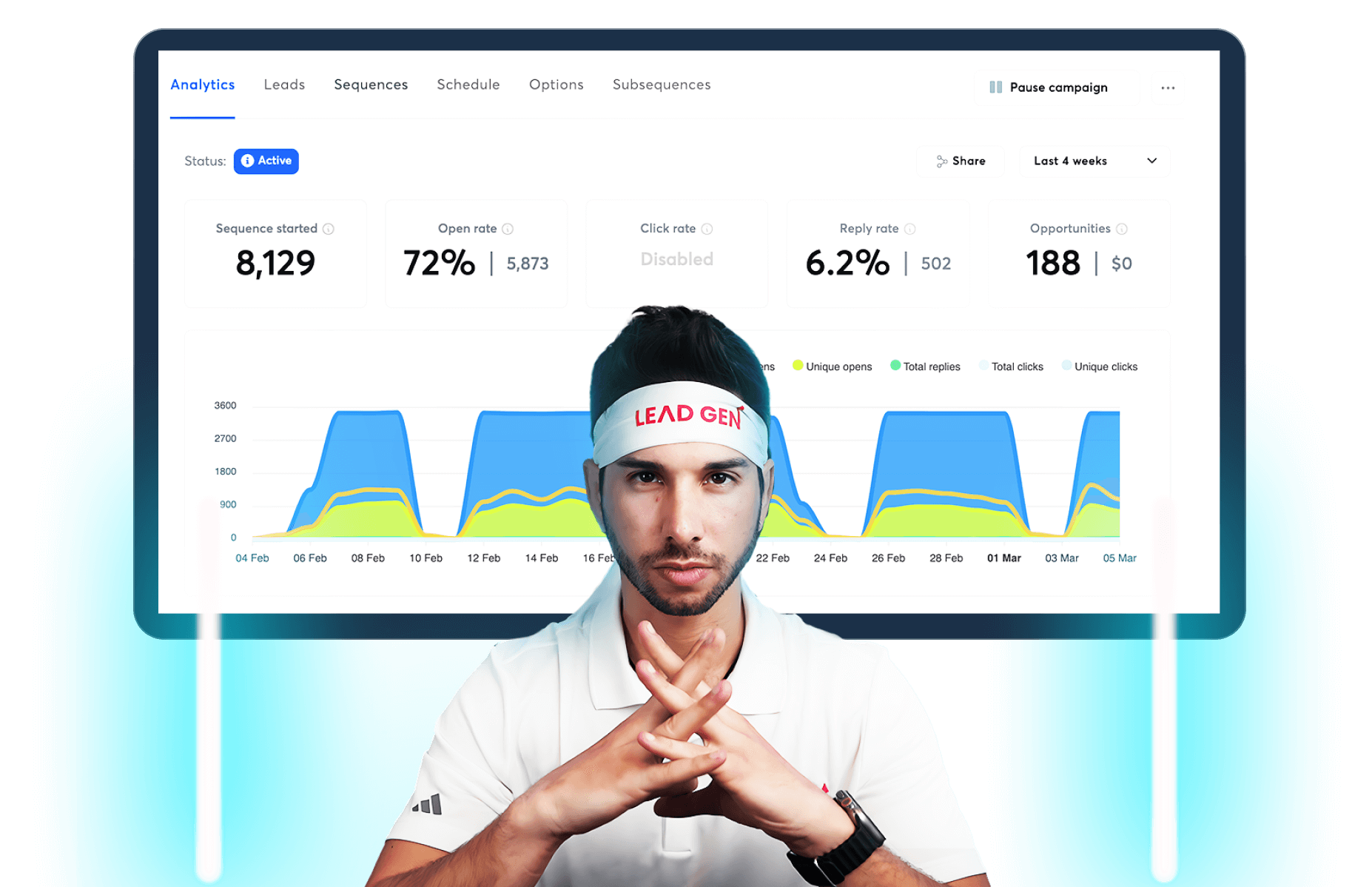 Your cold email sequence will be generated by our AI which has been trained by Lead Gen Jay on hundreds of cold emails he has written himself. You will answer a few questions about your offer and ICP, and our AI will write you a 3-step cold email sequence in just a few hours.