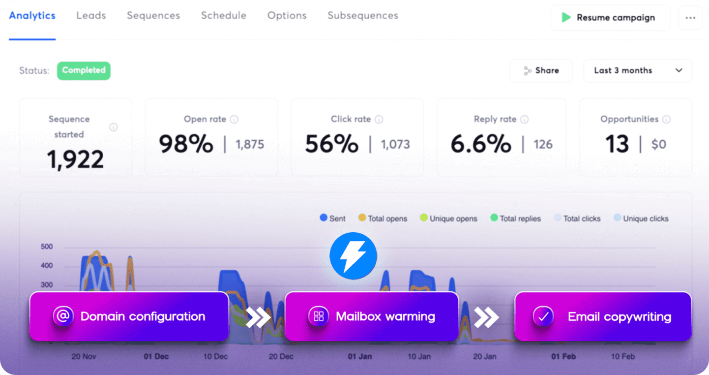 We will configure your DNS records and warmup your cold email mailboxes for perfect deliverability.