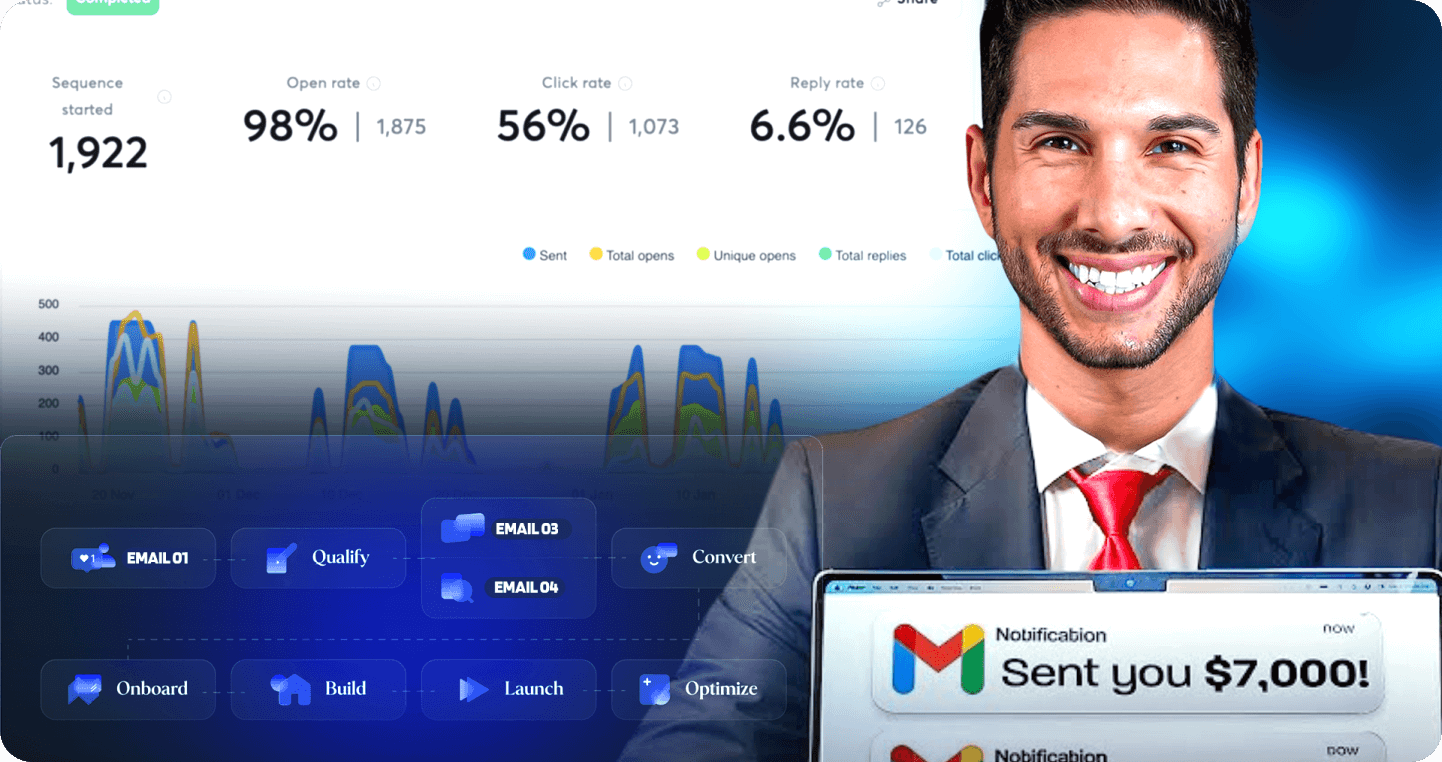 The $97 covers the entire setup of your cold email machine. You will be responsible for paying for your cold email tool. Instantly AI is $37/mo. You will also be responsible for the monthly fees for your mailboxes. Those are $3 per month each. The total is about $127 per month for a fully built system.